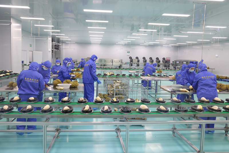 此柜冷冻榴莲进入广西嘉荣食物科技无限公司出产车间后,将出产成带壳切片榴莲、冷冻榴莲肉、该公司总投资3000万元扶植的国内首个榴莲全财产链智能化工场,通过集成全球领先的AI高光谱智能糖选、-195℃液氮急速冷冻及FD冻干等手艺,实现了对榴莲糖度、成熟度的无损精准检测和对榴莲质量的尺度化、可控化出产,完全改变了保守榴莲加工依赖人工分选、质量不均的行业痛点,从泉源保障产物质量。